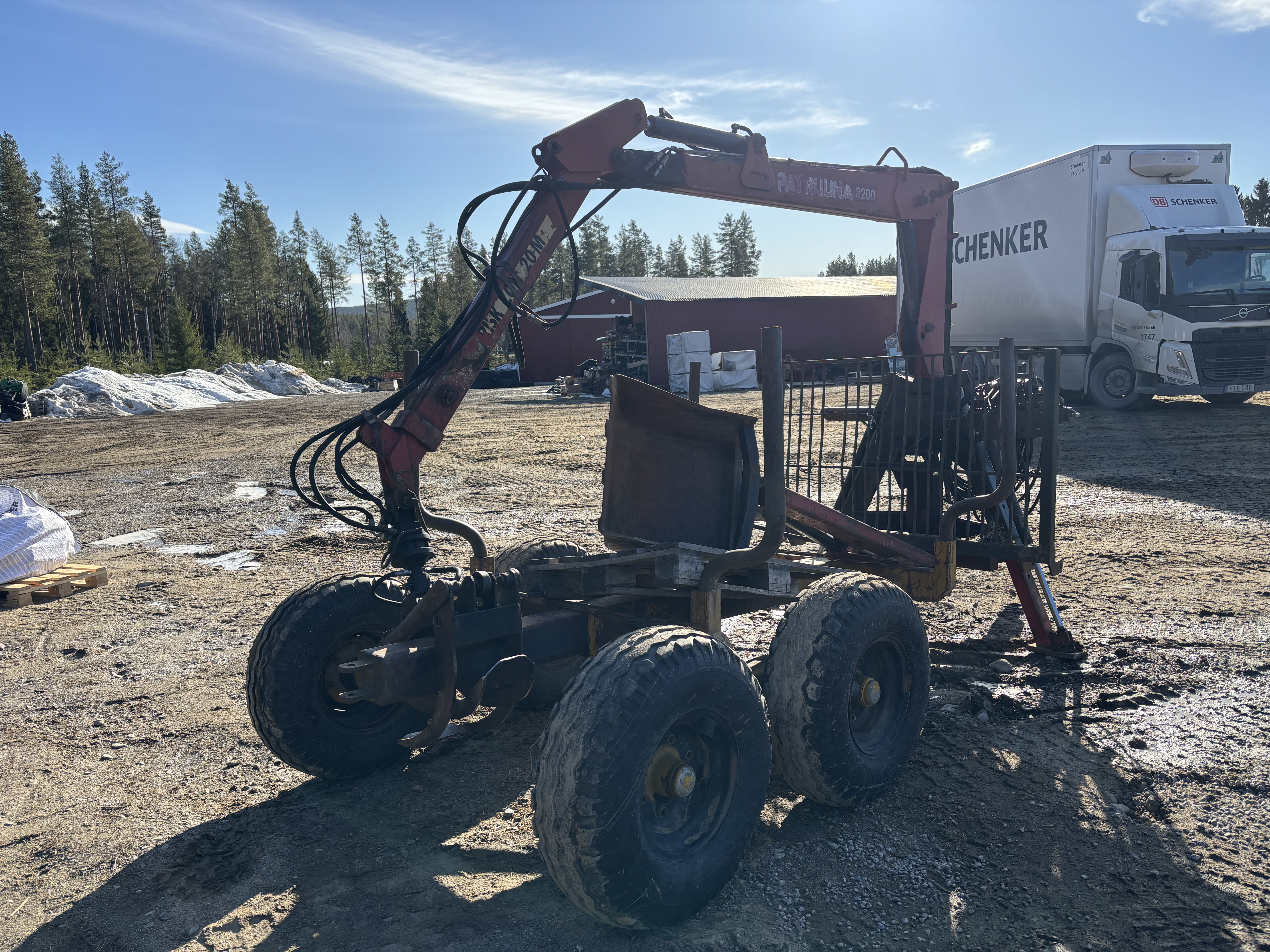 Skogsvagn FMV 8 ton med Patruuna 3200 skogskran & grävsticka