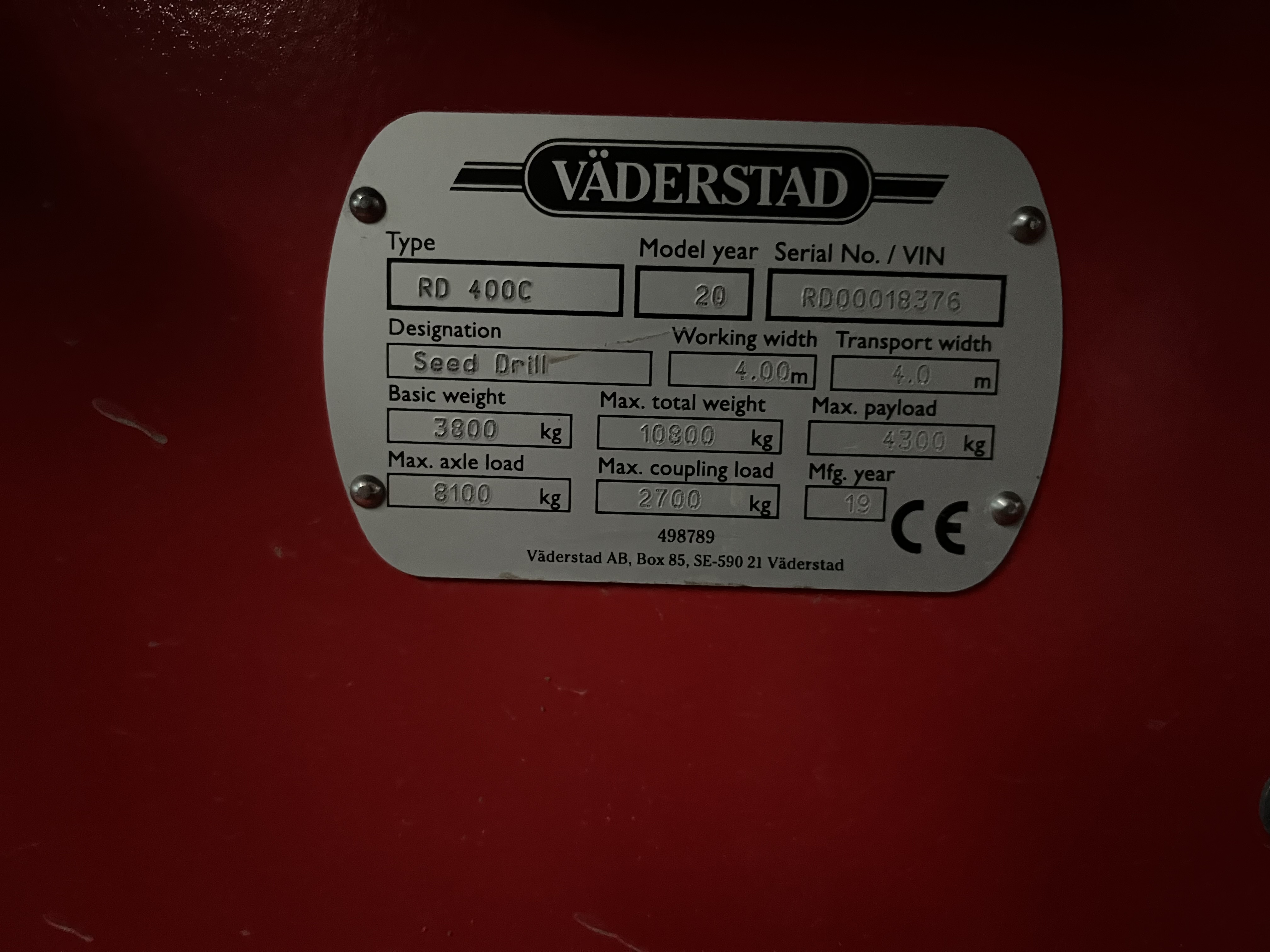 VÄDERSTAD RAPID 400C SÅMASKIN