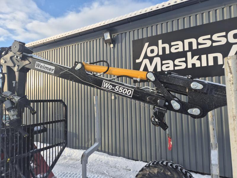 Weimer we 5500 kran 5,5 meter med utskjut vagn we-5:an 4g elservo spakar vinch hydralisk med fjärrkontroll trepunktsfäste på kran däck 400/60-15.5 ramstyrning tillverkad 2022 uttagen 2023 |