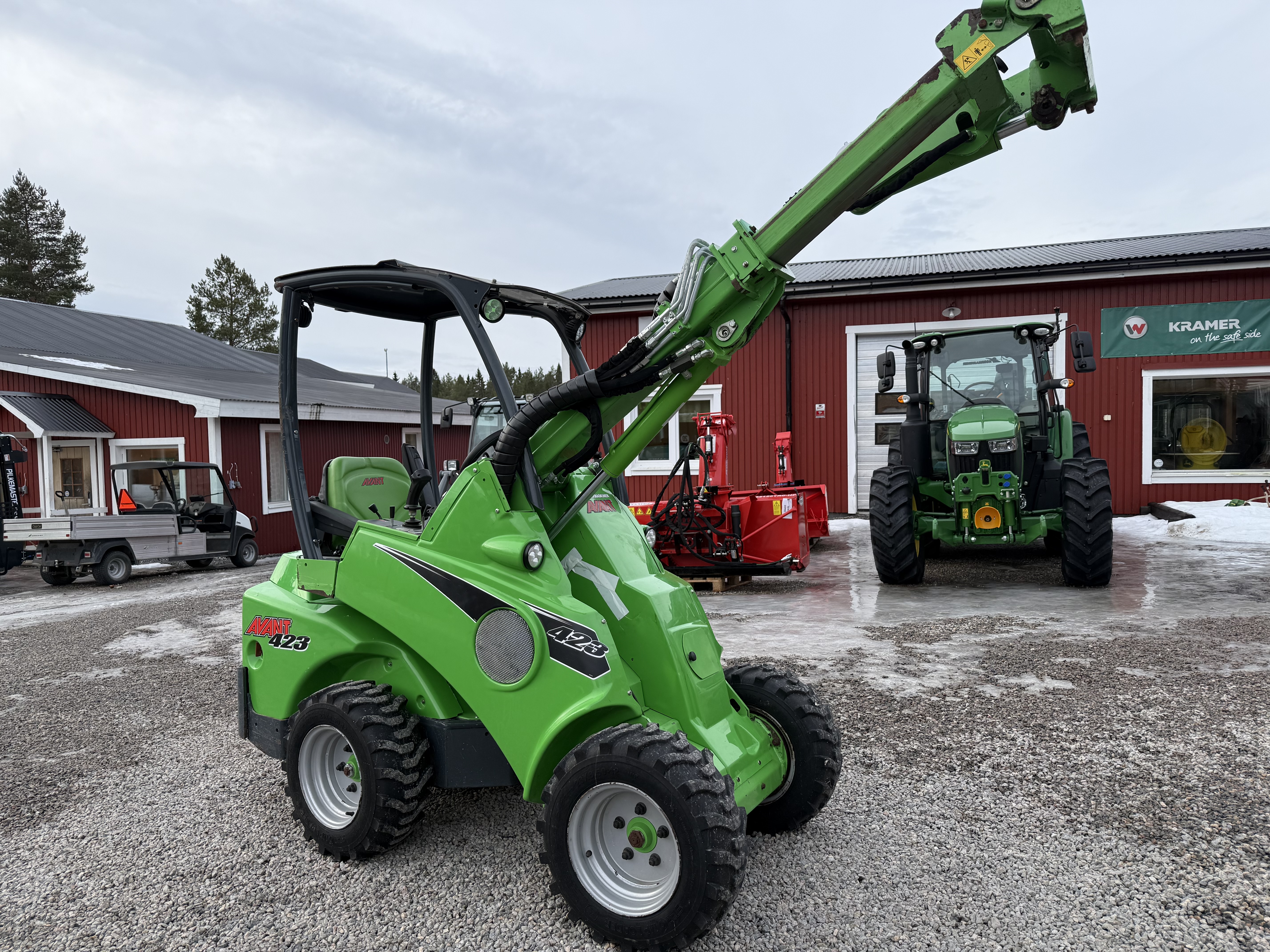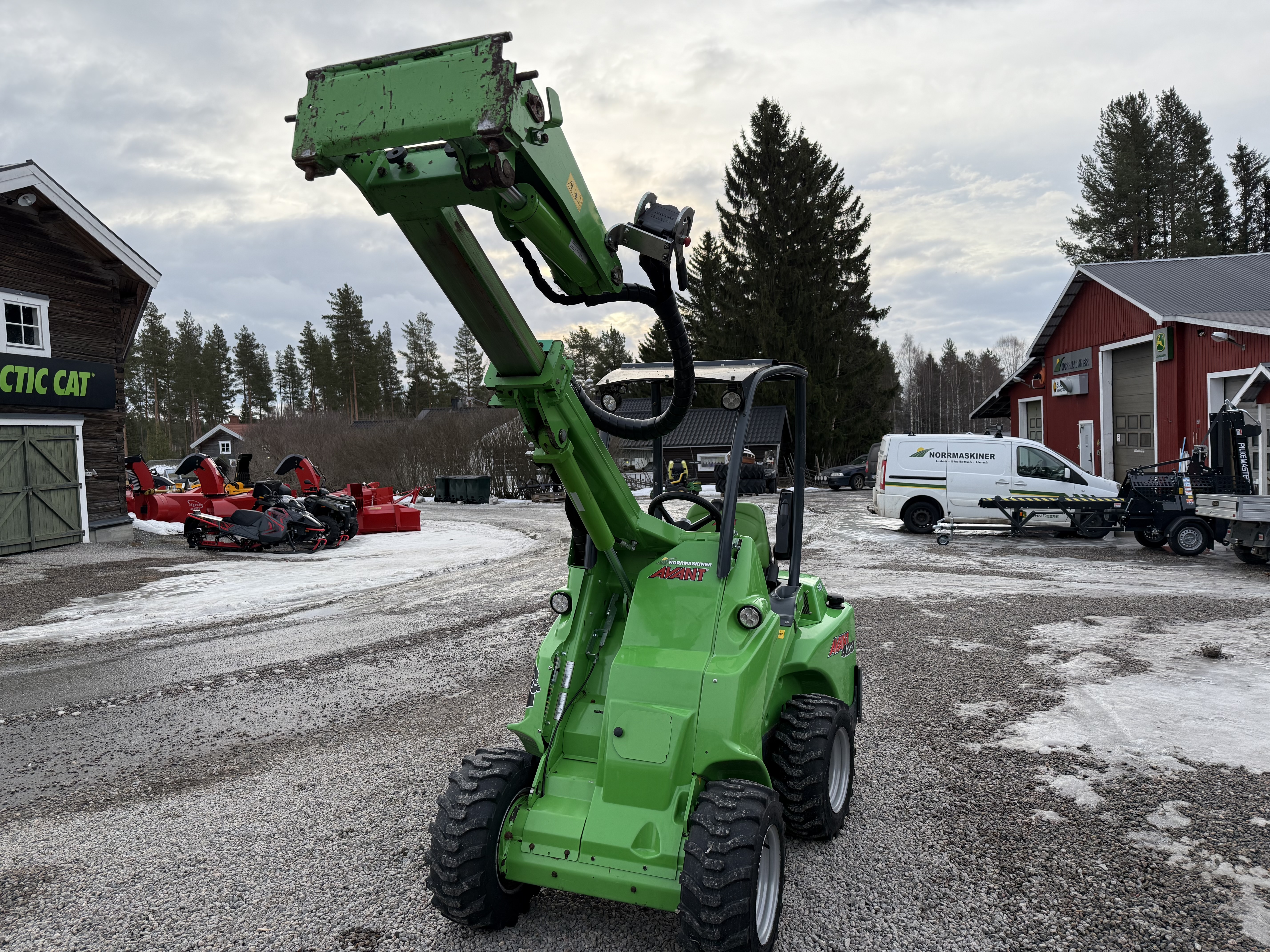 Utrustning: fjädrande sits med armstöd och värme 23x8.50-12 tr 4x4 med antislipventil och lock on/lock-off diff frihjulskoppling teleskoputskjut arbetsbelysning led 700 lumen hydrauluttag fram standard ropsbåge med tak joystick 4-funktioners kulkoppling 50 mm med sprint bakvikt med handtag 29 kg motorvärmare